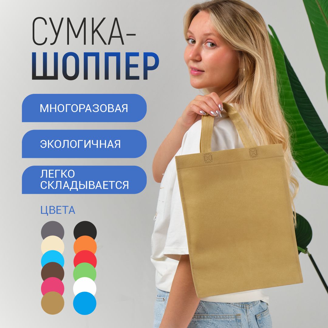 Многоразовый шоппер из нетканого материала с надежными пришивными ручками. Сумка из спанбонда приятная на ощупь, легкая и компактная.